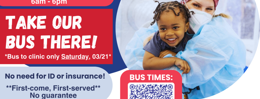 BRITE Bus will provide transportation to the UVA-hosted Remote Area Medical (RAM) Clinic at the Augusta Expo (277 Expo Rd., Fishersville, VA 22939) on Saturday, March 21.